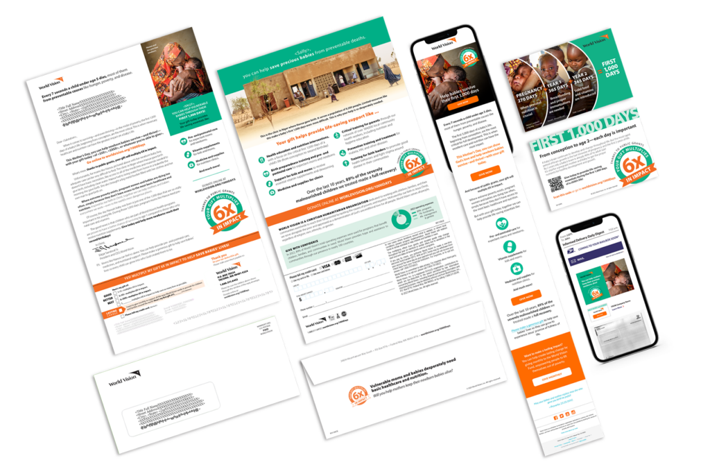 An integrated fundraising campaign designed to increase donor engagement and revenue across direct mail and digital channels. This project highlights cross-channel consistency, production precision, and strategic messaging alignment around the “First 1,000 Days” initiative.